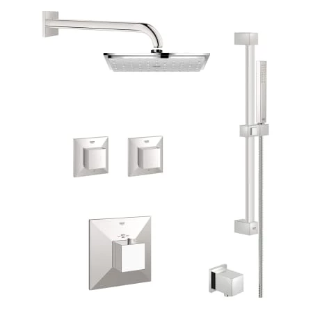 - Handshower features Grohe’s SpeedClean, DreamSpray, and CoolTouch technologies