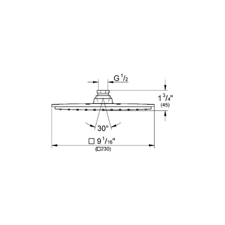- Shower Head Dimensions: 9-1/16″ W x 9-1/16″ D
