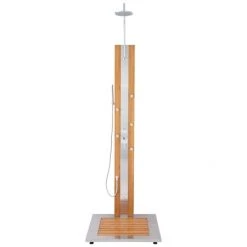 Signature Hardware Murray Bamboo Thermostatic Outdoor Shower Panel with Shower Head, Hand Shower, Bodysprays and Tray