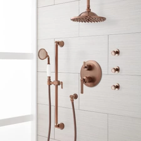 The Cooper Pressure Balance Shower System provides a wealth of showering options that includes a rainfall shower head, a hand shower, and three body sprays. The pressure balance valve features a built in three-way diverter which allows the user to seamlessly switch between any of the three shower functions. This lavish shower system is offered in multiple finishes with various rainfall shower head sizes to choose from, and will easily transform your shower into a relaxing retreat.