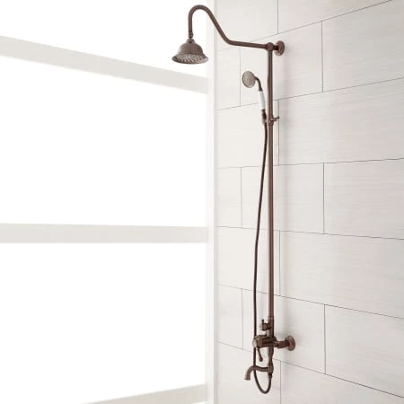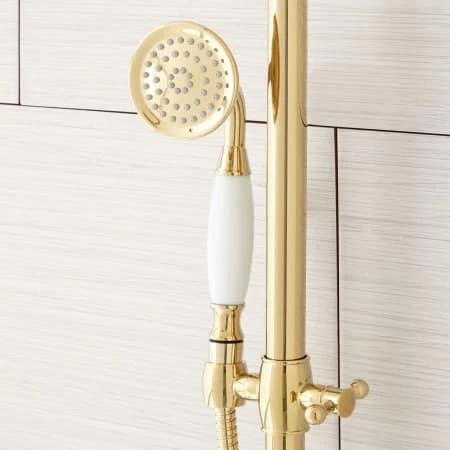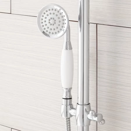 Give your bathroom traditional charm and modern convenience with the Dolwick Exposed Wall-Mount Shower and Tub Faucet. This product has a single-lever control and a diverter that lets you switch between a rainfall shower, hand shower, and tub faucet. The cradle for the porcelain-accented hand shower can be adjusted to suit your needs. Made of solid brass, the Dolwick is extremely durable and rust resistant.