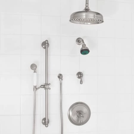 Transform an ordinary shower into the ultimate home spa experience in one affordable shower system. Made from solid brass materials, this set includes everything you need for a luxurious shower experience including a wall shower, ceiling-mount rainfall showerhead and handheld shower mounted on a slide bar. The included 3 way in-wall diverter controls the water flow between the three shower outlets.