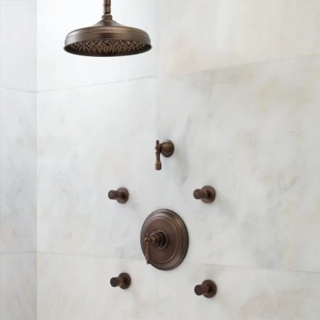 Designed to pamper you and provide reliable water pressure, the Glenley Pressure Balance Shower Set features a rainfall shower head and four body sprays. Switch between each showering option with the lever handle, mounted on a lovely stepped base. Crafted of brass.