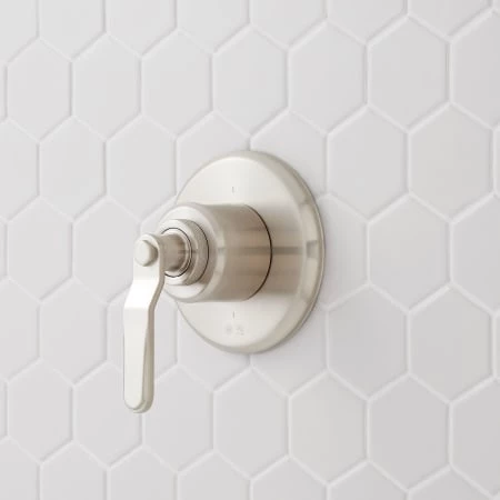 - Pressure balanced valve trim – single cartridge controls the temperature of the water and the on/off function