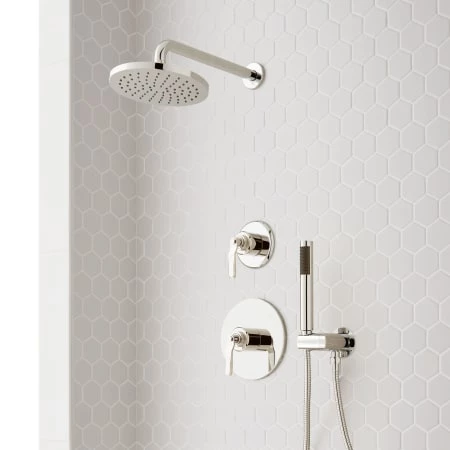 - Shower Package Includes: shower head, hand shower, shower arm, hose, valve trim, rough-in, wall supply, diverter, handles,