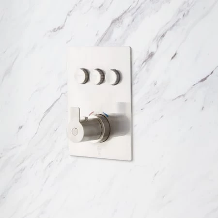 The Hollyn Simple Select Thermostatic Shower lends a true spa-like experience to your own home. Offering many ways for a relaxing soak, this system includes a dual-function shower head with rainfall and waterfall settings. Adding to its luxury are three powerful body sprays that ensure complete coverage. Its push-button valve gives you the ability to easily switch between functions or use all three at once. Featuring thermostatic technology, the Hollyn monitors and maintains the water temperature at the degree you select. Brass construction and a tarnish-resistant finish grants the durability needed for everyday use.