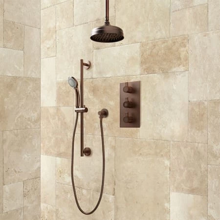 Enjoy the convenience of options with the Isola Thermostatic Shower System. This stunning set lets you choose between a mounted slide bar with Hand Shower and a rainfall showerhead. Thermostatic technology keeps water temperatures comfortably consistent.