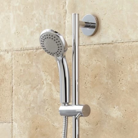 Enjoy the convenience of options with the Isola Thermostatic Shower System. This stunning set lets you choose between a mounted slide bar with Hand Shower and a rainfall showerhead. Thermostatic technology keeps water temperatures comfortably consistent.