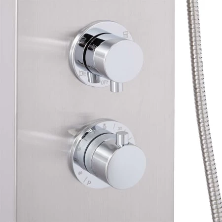 Because of its material, the Klette thermostatic stainless steel shower panel retains its luster throughout time. Relax as soothing jets caress your body and an integrated rainfall shower gently cleans and refreshes. Featuring a convenient hand shower, the Klette is a stylish addition to your master bath.