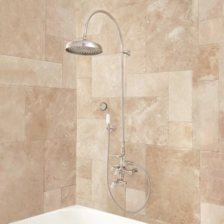 - Shower System Includes: Shower head, hand shower, shower pipe, handles, tub spout, and diverter