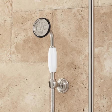- Hand shower holder pivots left and right, slides easily, and locks in place