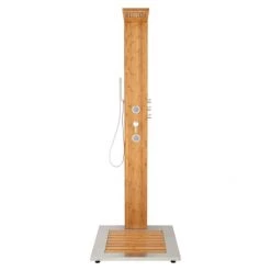 Made of aluminum, the Tilley outdoor shower panel is highly durable and resistant to rusting. Great for a pool or beachside area, this product comes with a hand shower so you can rinse manually. The Tilley has a slatted soap dish to keep items dry when not in use.