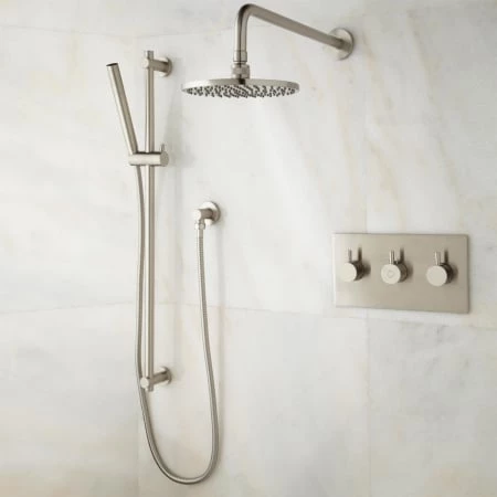 - Shower System Includes: Shower head, hand shower, shower bar, handles, and diverter