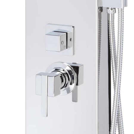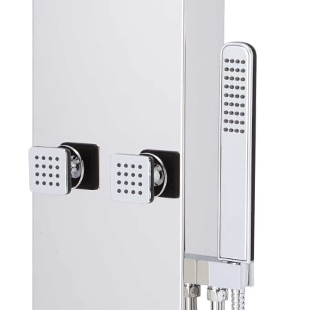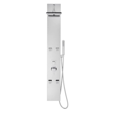 The Vaughn stainless steel shower panel has four body sprays and a rainfall shower head to soothe and relax your body. In addition to its space-saving design, this product features a hand shower with a matte finish for easy handling.